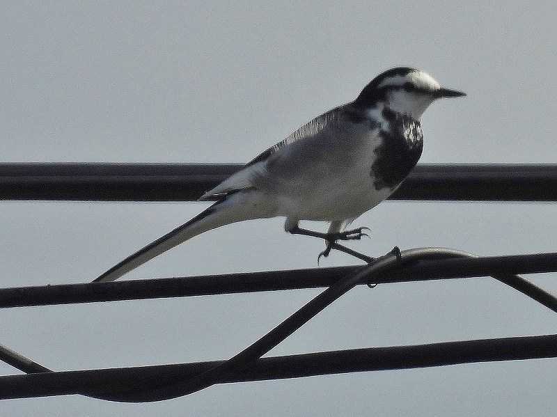我が家の庭に来た小鳥です。電線に止まったハクセキレイです。シジュウカラも
