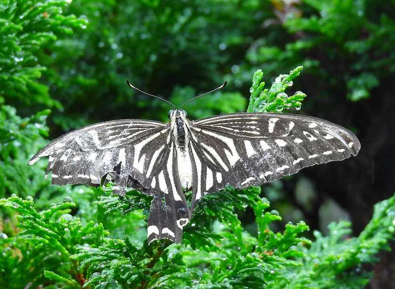 今日は雨です。雨が降り続いているこんな日にナミアゲハが木の枝に止まっています、木の蔭に隠れるのではなく雨にあたったままです。近くにはノシメトンボもいました。ナミアゲハ 秋雨や木の葉となりしアゲハ蝶 AI昨ノシメトンボ