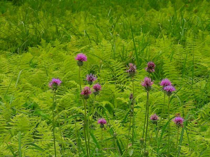 化女沼の野原にはの阿原アザミの花がいっぱい咲いていました。ノハラアザミキチョウアキノノゲシアキノキリンソウアキアカネが一杯上空を飛んでいました