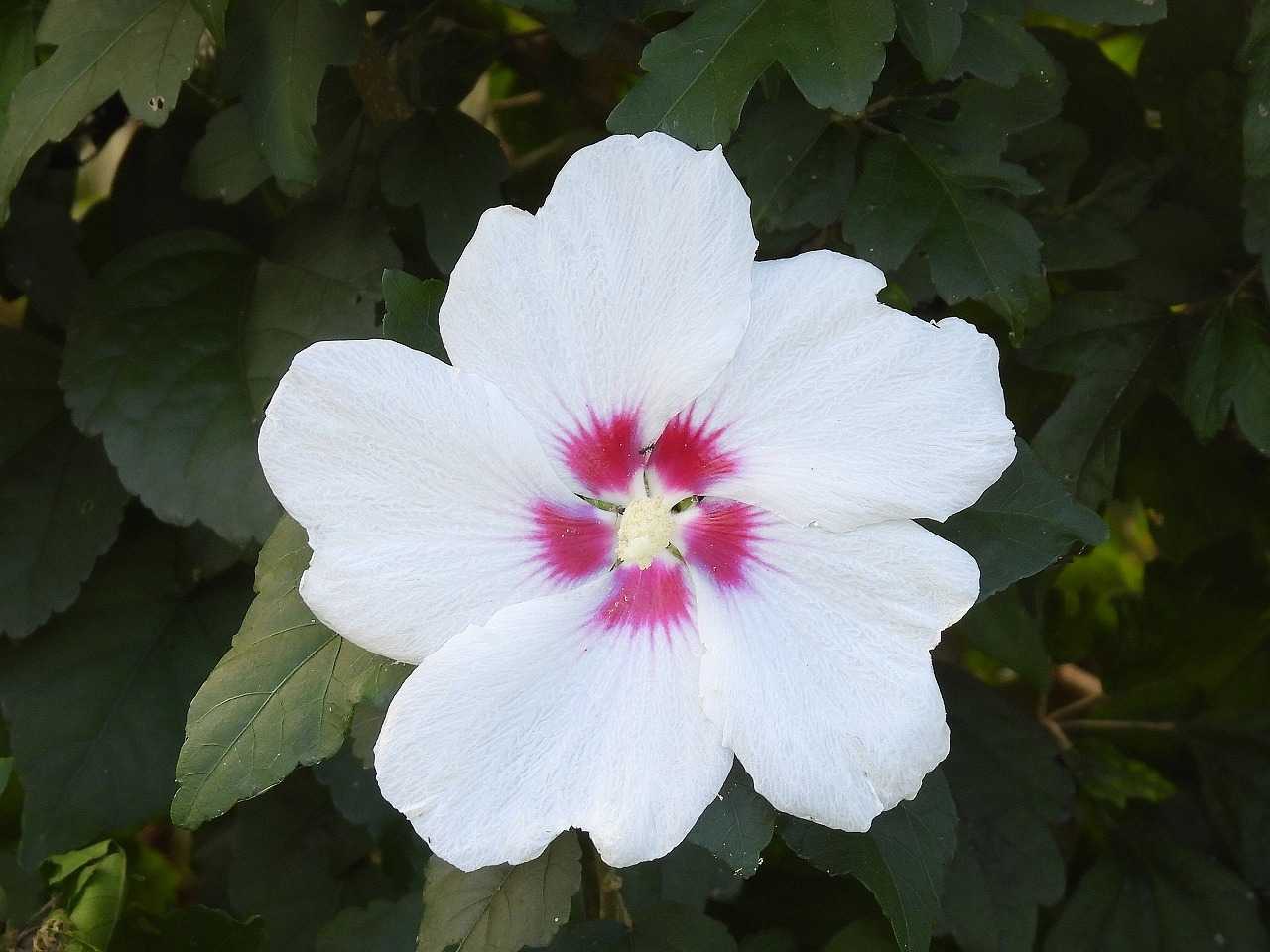 庭の花です。大きな白い花が咲いています。ムクゲ 木槿