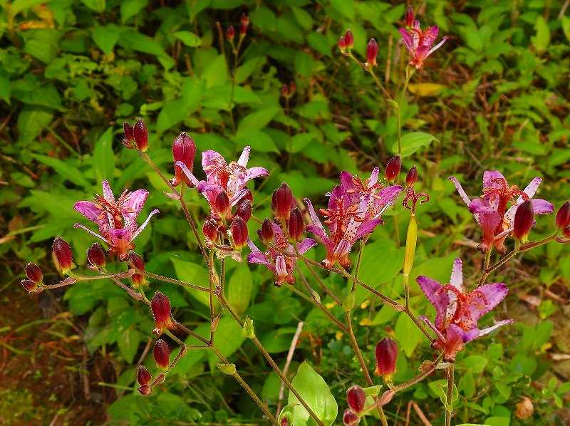 今我が家の庭にいっぱい咲いている花はタイワンホトトギスです。花の咲く期間もとても長いです。