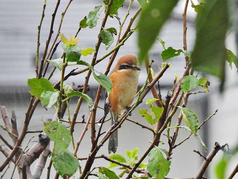 我が家の庭にモズが来ました。庭のキクイモの花も、次々咲き始めています。モズ 百舌鳥キクイモ