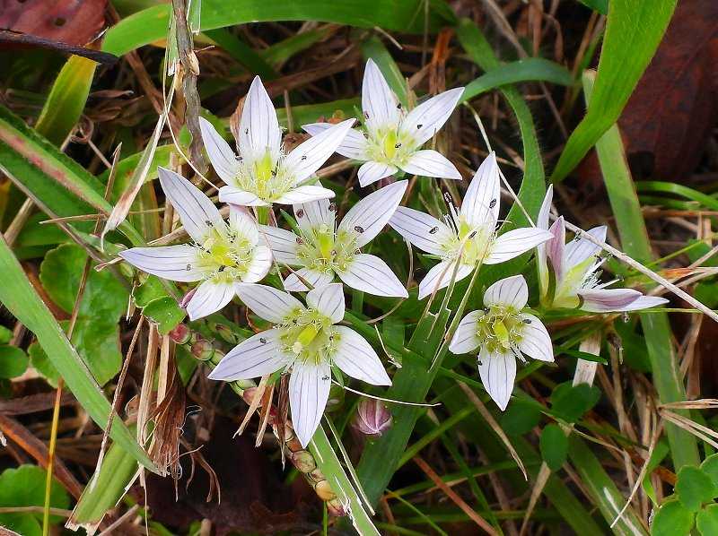 化女沼の宮澤遺跡の草地にセンブリの花が咲き始めていました。 センブリ (リンドウ科) 生薬名:「当薬(トウヤク)」 名前の由来と驚異の苦味 **「センブリ(千振)」**の名は、「千回振り出し(煎じ)ても、 なお強い苦味が残る」ことに由来します。 その強烈な苦味は、植物が虫に食べられないための防御策です。薬効と効能 「当薬(トウヤク)」当(まさ)に薬、非常によく効く薬の意味です。 苦味成分が舌の味覚神経を刺激し、反射的に胃液や唾液の分泌を促し、 苦味健胃薬として用いられます。【主な効能】 消化不良、食欲不振、胃痛、胃弱、胃部・腹部膨満感、下痢など また、古くはノミやシラミを駆除する殺虫剤として使用されたことも。 育毛剤としての利用 最近では、皮膚の血行促進作用や毛乳頭細胞を活性化させる働きが注目され、 育毛剤にも広く利用され、円形脱毛症などへの効果も期待されています。日本の三大民間薬 センブリは、ゲンノショウコ、ドクダミと並び日本の三大民間薬です。 古くから庶民の生活に根差し、家庭薬として使われてきた薬草です。