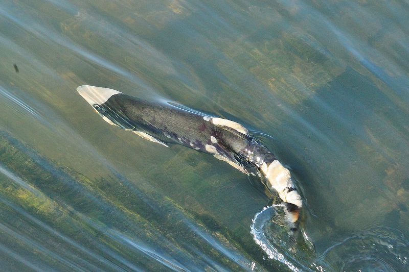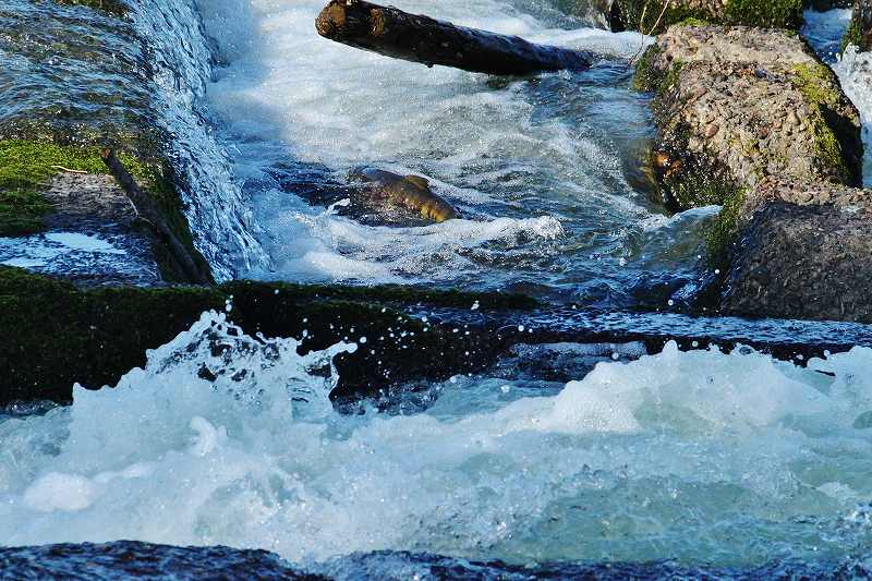 流れが速くて、サケが石段を乗り越える瞬間は撮影できませんでした。