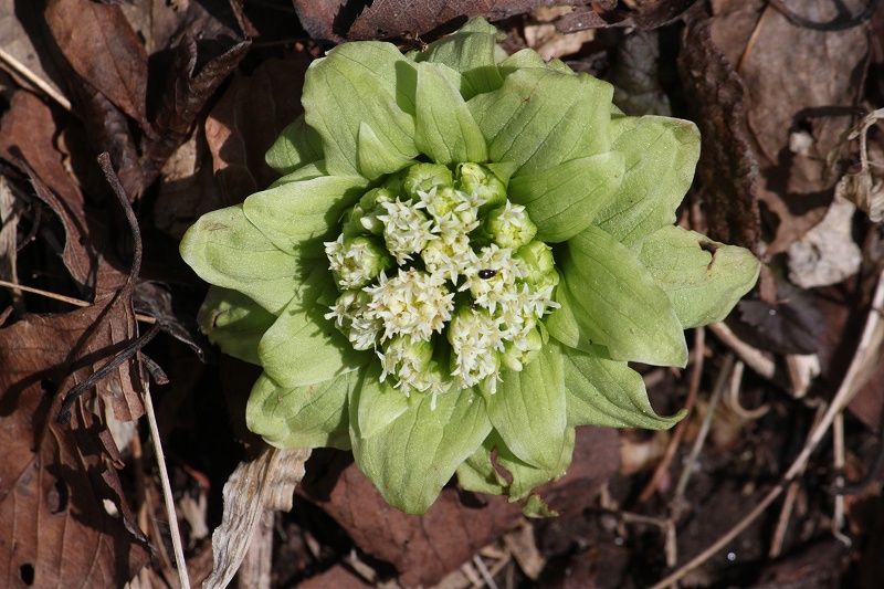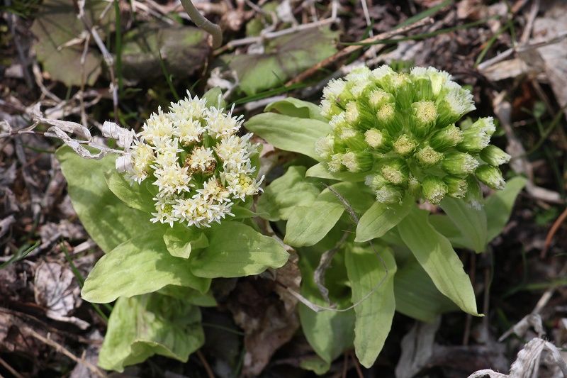 白梅の木の下にはフキノトウがいっぱい出ていました。