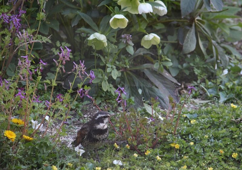 我が家の春の花咲く庭に、しばらくぶりに顔を見せた戸外の子飼いの鳥
