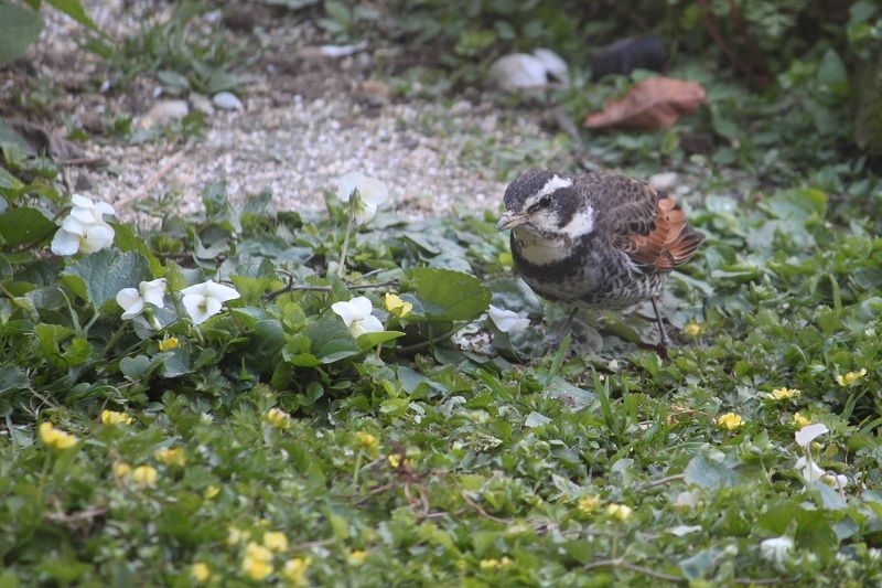 花は ムラサキケマン、タンポポ、クリスマスローズ、白いすみれ、ヘビイチゴ、