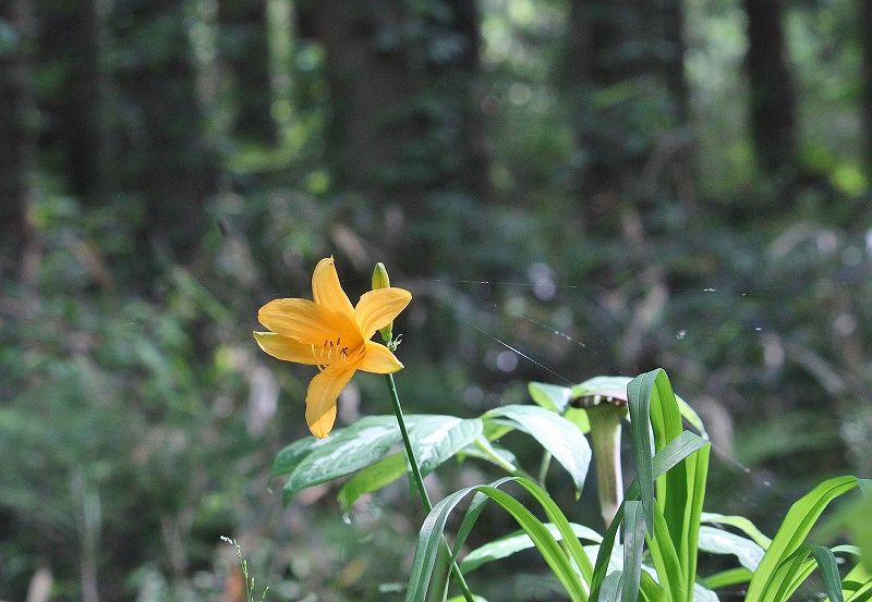 化女沼の林の中にニッコウキスゲの花が咲き始めました。