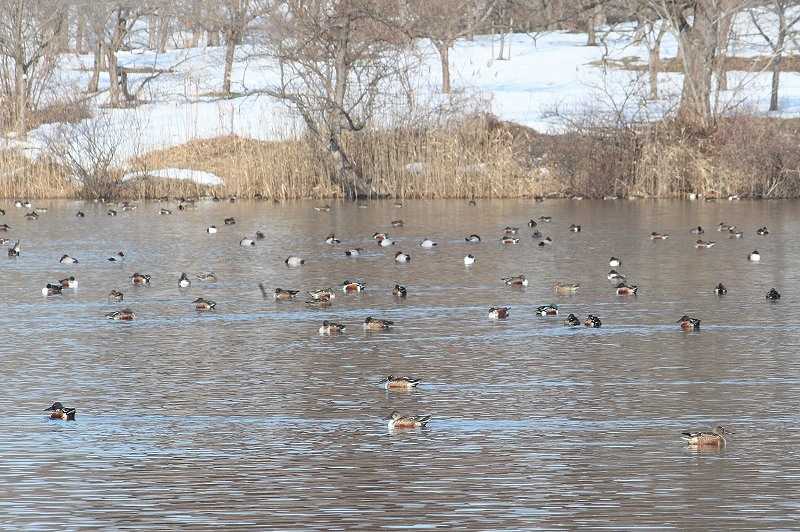 ハシビロガモとマガモを多く目にしました。後はカルガモ、ホシハジロ、コガモの姿も。