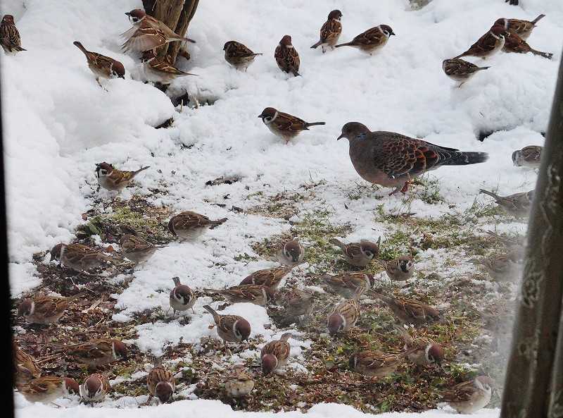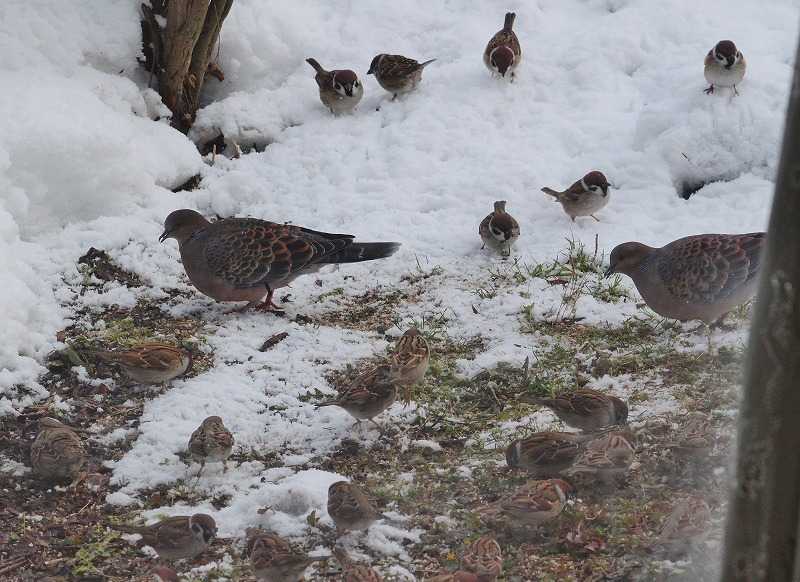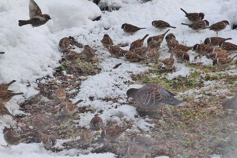 今日はヒヨドリの姿が見えず、スズメたちが集団で来ていました。