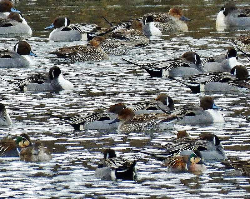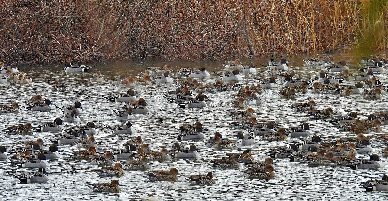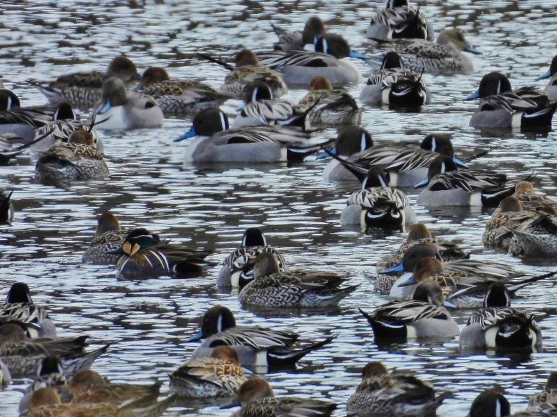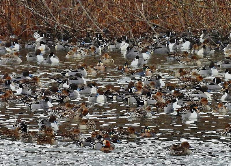 映した画像を見たら5羽ほどトモエガモが混ざっていました。