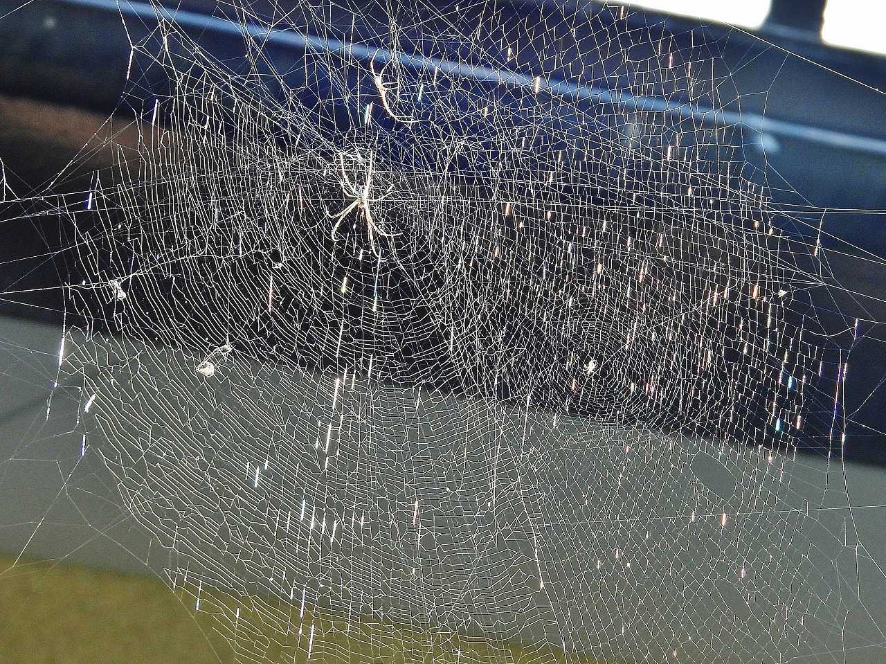 我が家の庭は蜘蛛の巣だらけです。