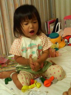 パパが風船を買ってきてくれたので風船で遊んでましたよ