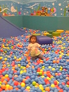 ボールのプールでやっぱり楽しそうに遊んでました。