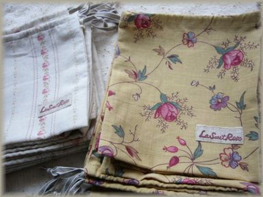 いつもお世話になってる雑貨屋La sweet roseさんの開店1周年記念イベントが11月に行われました。そのイベント用にと、製作を承りましたノベルティの巾着たちです。どちらの布も遠い昔のフランスの、大変貴重なファブリックです。イエローのお花柄、オフホワイトの薔薇、素材は異なりますがどちらとも肌触りがよく、ミシンの針もスムーズに進む、とても縫いやすく扱いやすい布でした。さすがアンティークファブリック!少しでも有効に布を使いたいと思い、継ぎはぎの部分をほどきかけてるときにすごい発見が!!見比べたらわかると思いますが、同じ布を、柄がきちんと合わさって継ぎはぎされているのです!当たり前のことかも知れませんが、ここまで綺麗にあわせて縫い合わせてあるなんて、昔の人の手仕事はとても丁寧なんだなぁ~と関心しました。簡単に出来そうで、出来ないと思います。ほどいた後、ほどくのがもったいなかったかな。。。とちょっぴり感じました。アンティークファブリックってすごい。ますます魅力にはまっちゃいそうです^^
