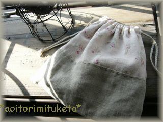 今回はお知らせです。トップページでも案内しておりますが、この度「ソーイング一日教室」を開催することになりました。手縫いでちくちく・・・楽しくおしゃべりしながら、リネンのきんちゃく袋を作ってみませんか?リバーシブルなので二通りのパターンで楽しめちゃいます^^こんな感じです↓↓↓裏に返すと・・・花柄は綿麻、無地は麻100%、チェックは綿麻で風合いの良い薄めの生地を使用していますのでリバーシブルでもごわごわせず重たくなりません。バッグの中の整理にちょうどいい大きさです。花柄は色違い4色の中から選んでいただけます。(チラシやアクト青山スタジオさんのHPではグリーンを掲載してます。)布はカット済み・印もつけてありますので、簡単に完成させることができますよ♪初心者の方も是非お気軽にお越し下さい^^日時:5月26日(土)場所:新潟市西区:「アクト青山スタジオ」さん時間:午前AM10:00~、午後PM1:00~の2回です。(予約制)所要時間:約2時間講習料:1,500円(材料費込み)製作に必要な道具はこちらで用意しますので、お持ちの裁縫道具をお持ち下さい。参加ご希望の方は・お名前・ご連絡先・ご希望時間をこちらまでメールをお願いします。今回初めて講習をさせていただくことになり、ドキドキワクワク・・・!しています。皆さまにお会いできるのを楽しみにしています^^