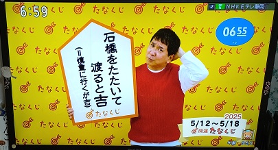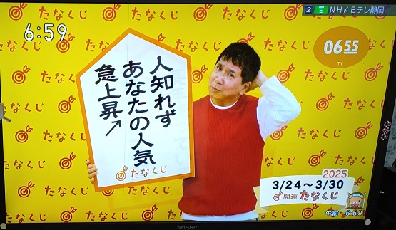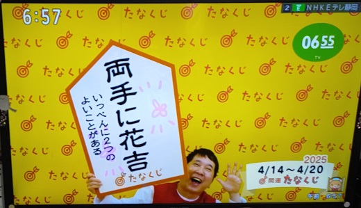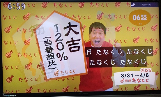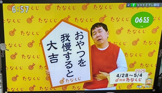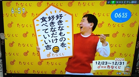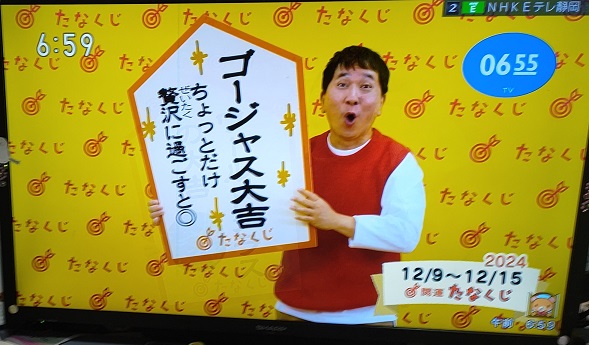 この日はたなくじの開始がいつもより早かったのであやうく撮りそびれるところでした。(^^;ちょっとお高いハムは取り寄せで食べてみた。けど、お肉は手に入るかしらぁ??そして曲の後にたぬくじ。油断していて、こっちを取り損ねました。(^^;いつもの普通のたぬくじだったから、まぁイイか。ww