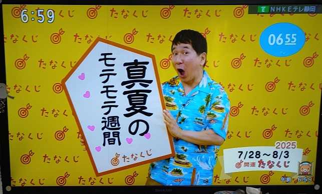 今週は忙しかったー。ちゃんとまっとうに仕事で。(笑)プライベートも充実していてカラオケにたくさん行けて良かった。(^^)て、そんなこんなで日記はまた週末になってしまったよ。もう書かなくていいような気もしてるんだけど画像があると載せておきたいのですわ。r(^^;夏の風物詩。これは確かにそうだなぁ。こいつはチビさんに意識してもらいたいヤツ。(^^;いや、これもう番宣じゃん。(笑)旗? 夏祭りでも行くか!!たぬくじは夏バージョンが戻ってきた。良かったー。(^^)やった!スーパーが撮れてた♪(^^)