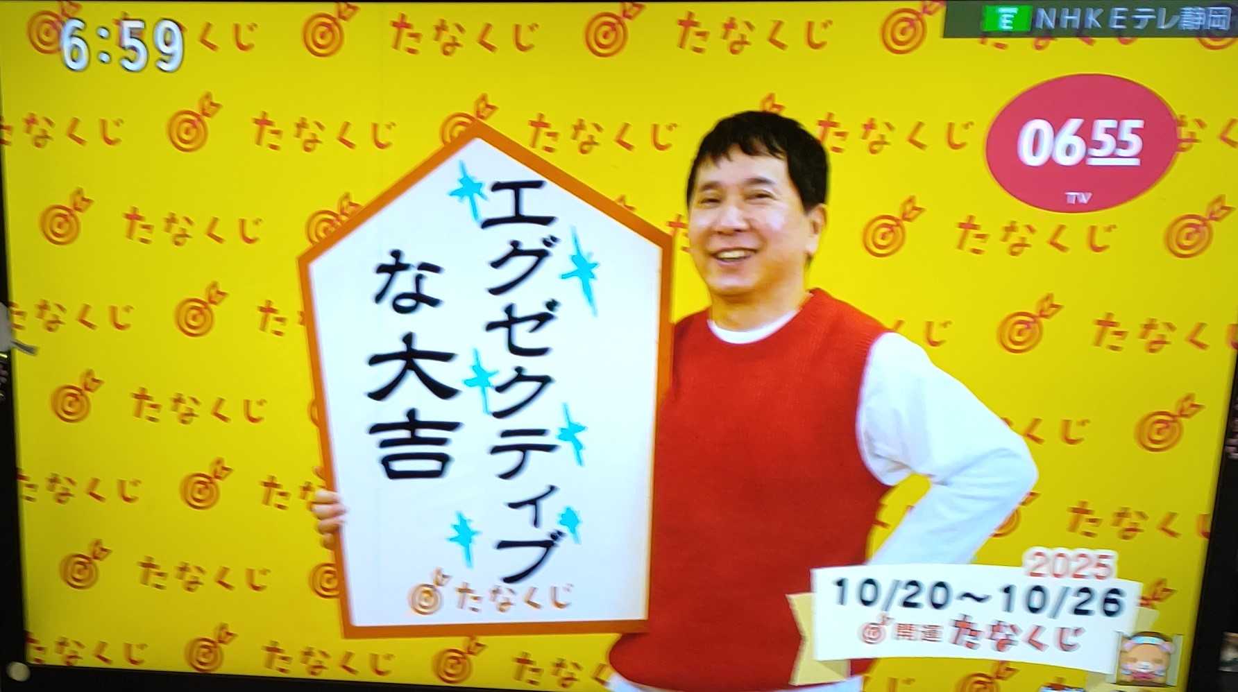 週末は東京へお出掛け。かしこまった席だったので緊張から来る精神疲労。でもまぁ、その前夜に面白い銭湯体験したりとか当日午前中に浅草の人力車に乗せてもらったりとかして楽しい時間もそれなりに過ごしました。月曜のたなくじも宿泊先で撮影。いや、そもそも目標を設定してないぞ。(笑)祝日だからか、たぬくじ ありませんでしたー。残念。(^^;