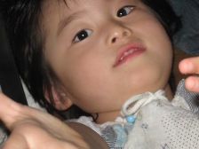 最近、あおが耳が聞こえたらな・・・一緒にお話したいな・・・と真剣になやんでて。ピアスさえ怖くてあけれない私。手術なるものは、怖すぎて でも、人工内耳のこと、考えたりしてます・・・主人は、基本的にあおの障害もなるようにしかならないさ。耳が聞こえないなら仕方ないやん、それは、その人生さ。という考えで、普通の生活をしてます。 でも、でも、普通の生活だけで、あおの能力は、伸びるわけもなく・・・1つのことも、健常児の100倍も1000倍もかけて、できるようになってる事実もむなしく 主人は、未だに毎日、普通に生活するので精一杯。あおの将来の不安も先のことも、幼稚部のことも、相談しても、結局ノーコメントでした・・・・・ それは、それで、ただ食べて寝るだけの生活なら、楽ちんかもだけど、+αで、あおが少しでも成長してくれれば、私にとってみれば、生きる希望で、生きる活力の素になってるのです・・・ 小学校になって、めっきり友達優先のしんが、これまでの支えで、いまでも、しんの方が、主人より、あおのことを手助けしてくれてるのは、変わりなく、の毎日です。 しんにぼやいてみました。母「ママね、あおが、少しでもお耳聞こえて、一緒にお話できるように、耳の手術、やってみようと考えてるよ。」しん、即答で「だめだめ。手術なんて!。耳の手術して、もし、失敗して、あおが、死んだらどうすると!?手術したら、だめ!」母「でも、手術しないと、一生あおとお話できないかもだよ」しん「でも、耳が聞こえて、死ぬより、耳が聞こえなくても、生きてるほうがいいやん。ママもそう思わん!?」というしんの力強いことばに、唖然とした母でした そして、今日、食欲もなく、風邪?のような症状で、鼻水も出て、ぐったりして、寝てばかりいるあおを見てたら、いつも言葉は、話さなくとも、元気に家の中もちょろちょろしてるあおのことを思い浮かべて、なんだか涙がとまりませんでした・・・