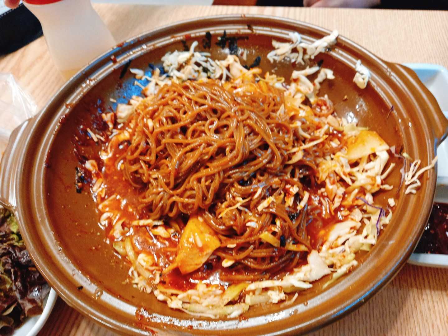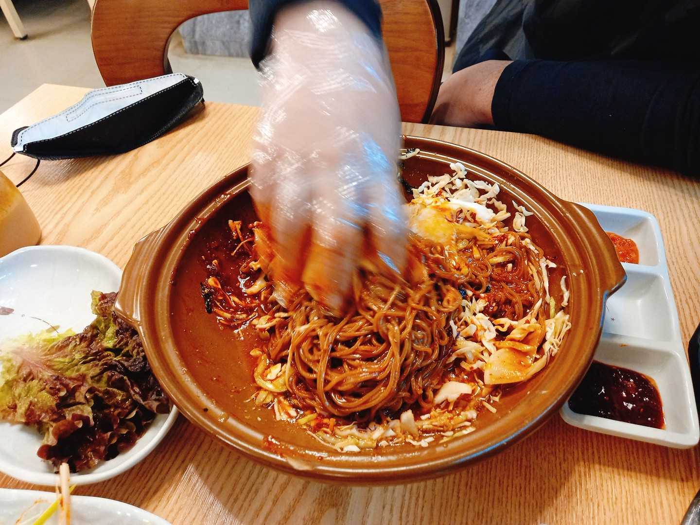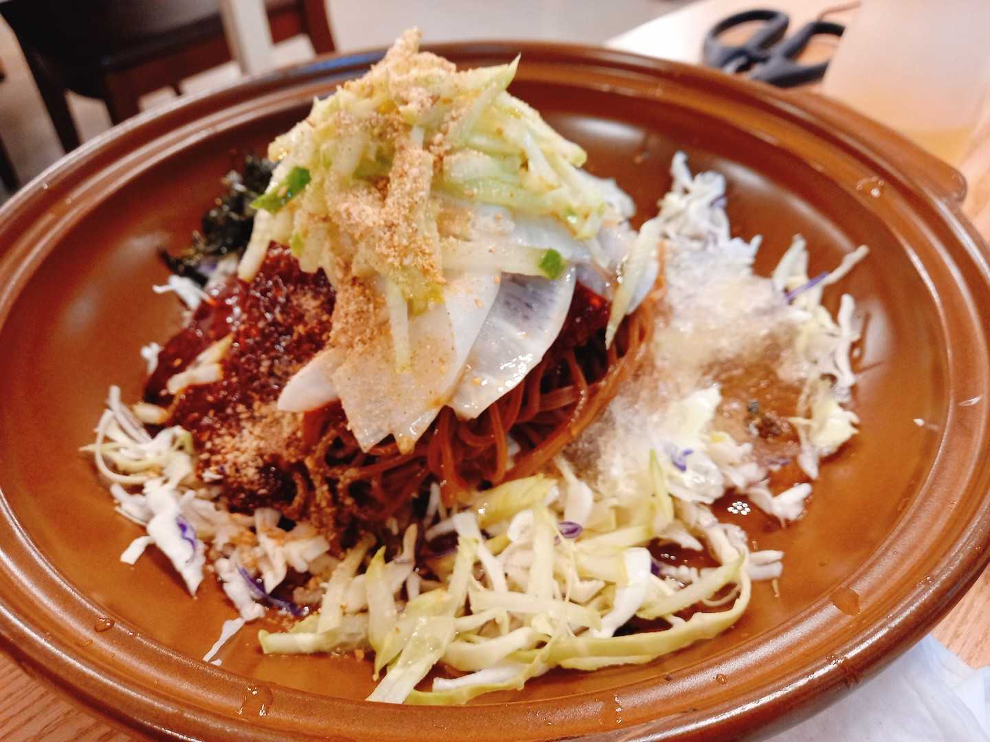 チェンバン(皿)ビビンミョン(1万ウォン=970円)を追加注文。