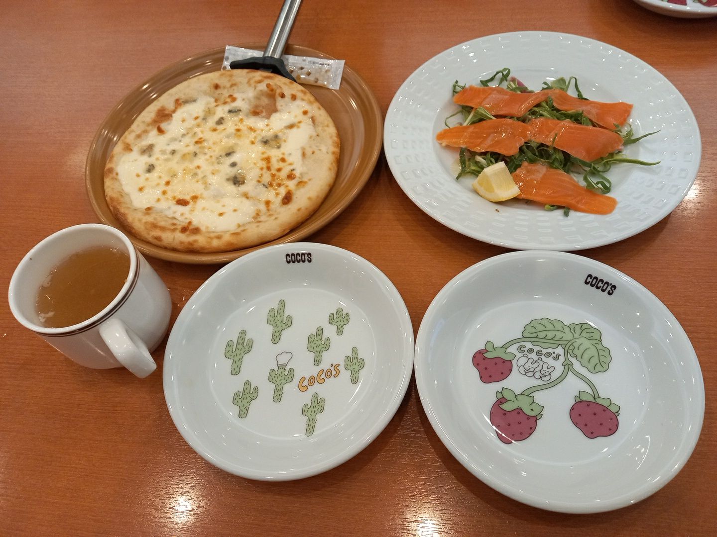 ノギさんは、クワトロフォルマッジとサーモンのカルパッチョ。