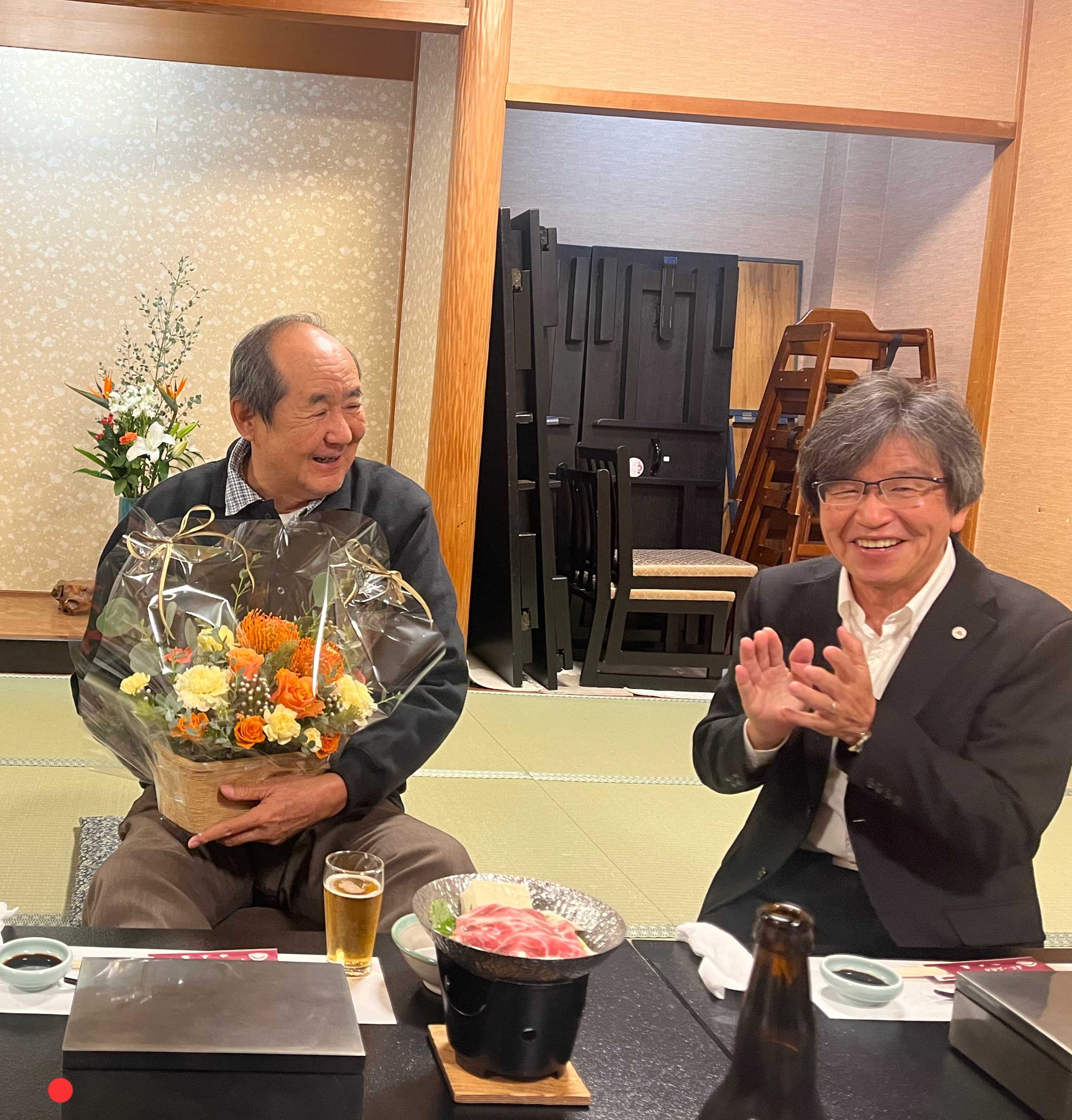設計士で、監督の…堀さん!71歳。13年間、(株)青山製材所の一員として支えて頂きました。堀さんの送別会(感謝を伝える会)堀さん…13年間ありがとございました。事務員のお姉さん(実姉)(株)青山製材所の、歴代業者会会長さん大工さん基礎屋さん水道屋さんで、開催…いつもお世話になっている、日本泉さんで開催!