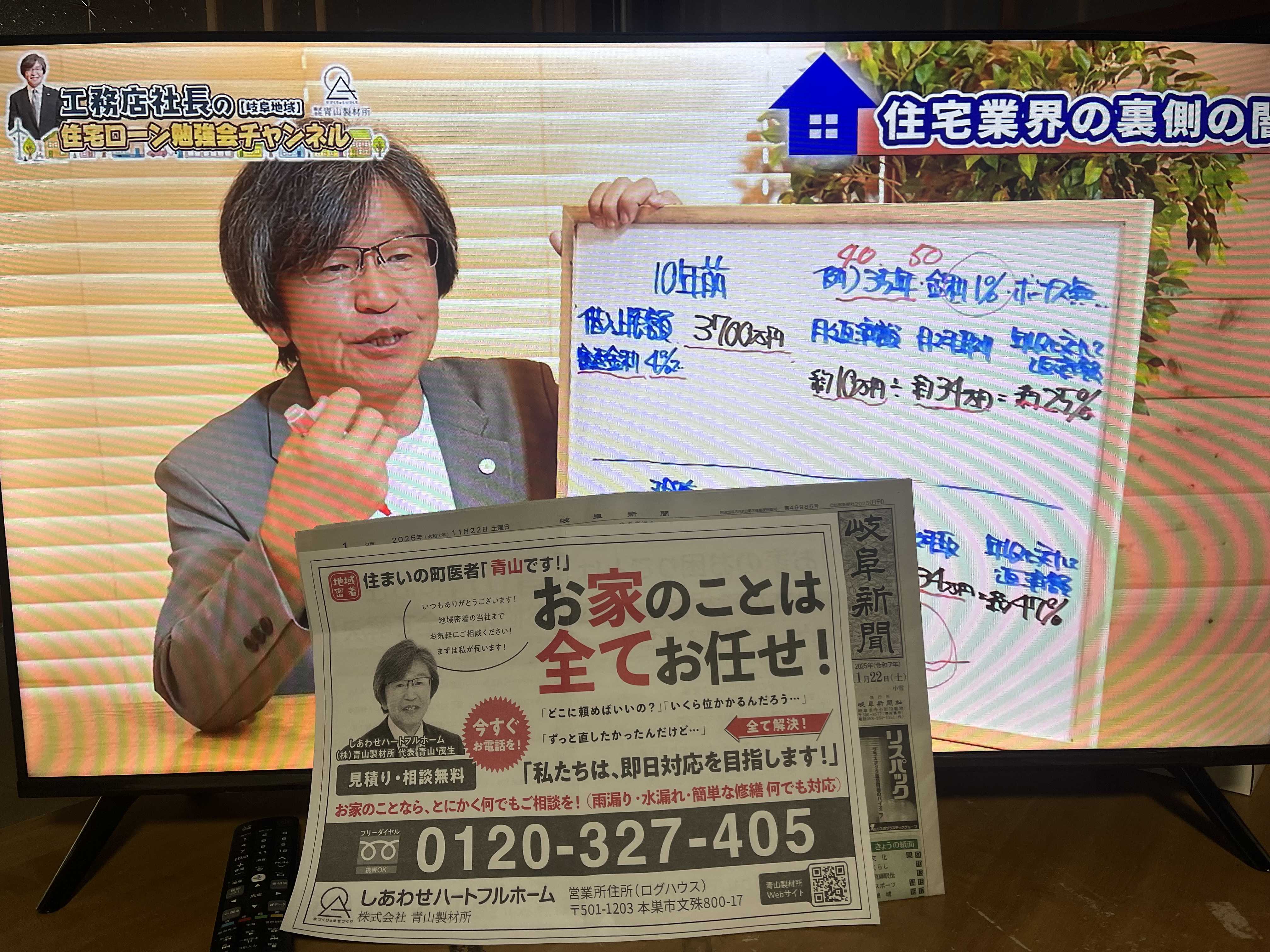土曜日の朝8時から…CCN etさん(ケーブルテレビ📺)さんで放映!弊社のYouTubeチャンネル工務店社長の住宅ローンチャンネルそして、朝刊に折り込みチラシがはいりました。朝から、ご家庭にお邪魔してます。