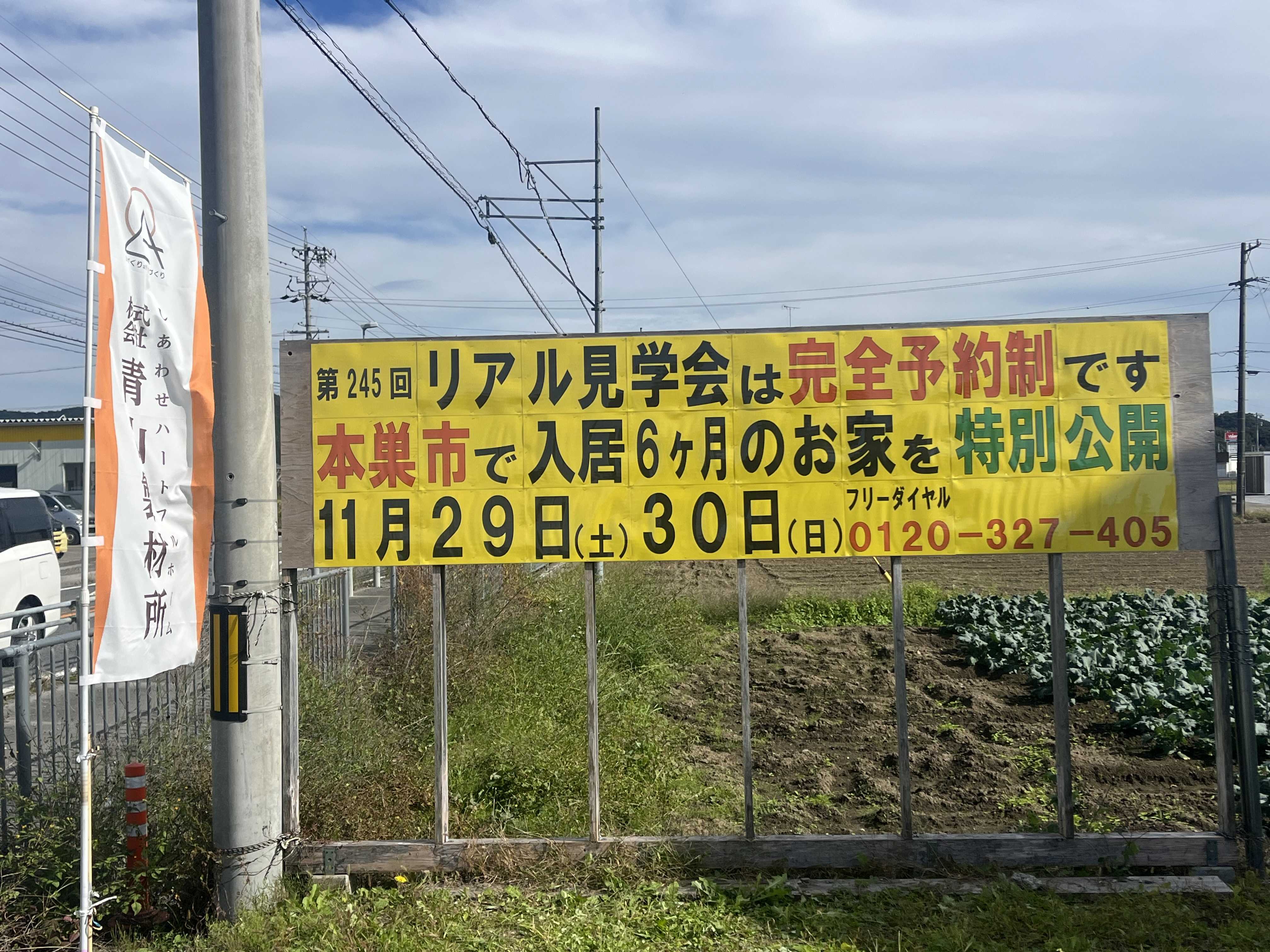 第245回 リアル見学会は完全予約制です!本日、野立て看板の内容を張替えました。チラシ…表チラシ…裏岐阜市の新築現場は…順調です。このお家が建ちます。