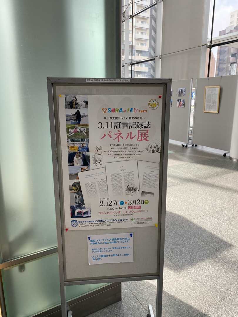 まもなく東日本大震災から10年… 福島市のコラッセで SORAアニマルシェルターの代表やスタッフさん達が 動物たちの命と向き合った 10年間に及ぶ記録が パネルにて展示されていると聞き 本日足を運んできました。 たった2枚のこのパネル… 津波が どれほどの凄まじさだったことか… 胸が締めつけられる思いでした。 そして 今SORAにいる動物たちが こんなふうに保護されてきたことを 初めて知ることが出来ました。 震災前から 動物達の保護活動をしてきたSORA いち早く被災地に出向き 動いて下さました。 しかし当時は 代表の言葉にあるように 動物たちを保護するために 必要なものを確保しなくてはならなかった際、 人が大変な時に動物のためになんて出せないと… 頭がおかしいんじゃないの とまで言われ 世間の目は大変冷たかったそうです。 こんな大変な思いをされながらも それでも こういった活動を続けて下さったおかげで 今のSORAがあります。 救われた命があります。 SORAの代表をはじめ スタッフさんたちの熱い思いに 本当に頭が下がる思いです。 あ シェルターだ! なんて素敵な写真 こちらは「プーちゃん」です。 実は私たちがくまごろうの里親になる少し前に この子も無事に里親さんが決まって SORAを卒業したわんちゃんです。 今は名前が変わって「ジュール」ちゃんと言います。 当時10才で 心臓の病気を持っていました。 おととしの「犬あそび」で 元気なジュールちゃんに再会することが出来ました。 こちらがその一コマ♪ シェルターにいた頃から くまごろうの後ばかり追いかけてきて 再会時も 変わらずグイグイでした(笑) シロクマ君 昨年 「I LOVE みんなの動物園」という番組で 相葉さんがSORAに来て下さった時に カットしてもらった わんちゃんです。 そしてそして いました~♫ くまごろう 私たちの知らない写真でした。 こんなにいい笑顔を見せてたなんて すごく大切にそして愛情深く SORAで育てて頂いたんだなと 本当に感謝の気持ちでいっぱいです。 今 SORAでは シロクマ君をはじめ 大部分の犬が高齢となってしまいました。 それぞれ持病を持っている子も たくさんいます。 被災して もちろん私たちも大変な思いをしましたが それは動物たちも一緒であると… 震災前 優しい飼い主さんの元で きっと今も穏やかで温かな生活を送っていたであろう この子たち… 今はSORAで 優しいスタッフさんやボランティアさんたちに守られ また穏やかな日々を過ごすことが出来ています。 SORAの動物たちは そんな思いに応えるかのように みんな優しくていい子たちばかりです。 この子たちにとって このままSORAにいても幸せなのかな… と思うこともあります。 正直何が幸せかなのかは私にも分かりません。 ただ もう一度 あの日のように また新しい家族の方と絆が結ばれたら それはどんなに素晴らしいことだろうと。 私たちは SORAでくまごろうと出会い、家族になれ 今、たくさんの幸せをもらっています。 震災は 本当に辛い出来事でしたが それによって 新たな絆が生まれたことは確かで 今 幸せだとしたら その悲しみはひっくり返すことが出来る 人も動物も 救われるのではないでしょうか。 きっとそれを一番に願っているのは SORAアニマルシェルター SORAのことを もっと多くの方に知って頂いて 少しでも 何かを感じてもらえたり 共感して頂けたら 嬉しいです。 最後まで お読みくださり 本当にありがとうございました。 訪問いただきましてありがとうございます