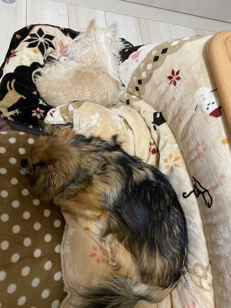 久しぶりのトリミング♪ 今回から 新しいお店「Animal」さんへ。 実は驚いたことに くまごろうにとっては 初めてではないことが発覚‼ なんと まだアニマルシェルターSORAにいた時 こちらのお店の方が ボランティアでくまのトリミングを 2回ほど担当して下さっていたことが分かりました。 縁って 本当にあるんですね モコは初めてでしたが… 毛質がとても変わっていて いつもトリマーさん泣かせのモコでしたが ふわふわもこもこになって 帰ってきました。 あら ちょっと毛が立っちゃった(笑) 今まではけっこう 短くカットしてもらっていたのですが 実は バリカン負けしてしまうことが分かり 事前にトリマーさんと相談の上 ちょっと長めに ハサミだけでトリミングして頂きました。 こちらはくまちゃん まあるく 可愛くカットされてます♪ 何より 以前トリミングをして下さった方が また担当して下さるなんて 本当に光栄でした。 帰ってきてからは モコは主人にべったり ゴロン あ 寝ちゃいそうだね… たぶん 寝ました。 くまは すでに 寝ていました。(目を開けて寝ます) 可愛いスタイも着けて下さって 「Animal」さん ありがとうございました❣ 訪問いただきましてありがとうございます