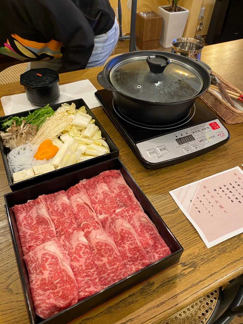 さてお次は いよいよ お待ちかねの夕食です♪ 実は 食事も いろいろなプランを選ぶことが出来るのも このエンゼルフォレストの 魅力のひとつでした。 昨年の11月とあって コロナ渦での旅行だったので 私たちは 初めから すべてをお部屋で満喫したいと決めていました。 それで 選んだプランがこちら♪ じゃ~ん お部屋で堪能出来る 福島県産牛のしゃぶしゃぶです。 お品書きも 付いてきました。 すごい‼ 前菜まである 前菜がこちらです。 うわあ ご飯にうどんも。 部屋食ということで こんな感じで 調理器具等も一緒に届きます。 テンション上がりまくりの 食事でした。 なので 肝心の出来上がりの写真を撮るのを 一切忘れてしまいました。 タレは ポン酢とごまダレの2種類あったのですが 家で食べる市販のタレとは別物で 手作りしたような感じの味で すごく美味でした。 そしてお肉はもちろんのこと 何より お米が美味しいことに感動 〆のうどんもこれまた もっちもちでした こうして 部屋でゆっくりと 他の人を気にすることなく 自分たちのペースで楽しむことが出来、 そして何より 前菜からメインのしゃぶしゃぶと すべてが美味しくて 大満足の夕食となりました。 ごちそうさまでした。 そしてそして 忘れてならない わんこたちのお食事♪ メニューはおまかせとなります。 こちらも写真を撮り忘れ… 大根と人参が入った 牛すじの煮込みでした。 モコもくまも 美味しくいただきました 食事のあとは リビングで しばし、まったり。 お菓子を持参したのですが お腹いっぱい過ぎて 一口も手を付けることは ありませんでした。 モコは 部屋に備え付けの ワンちゃん用ソファーが 気に入ったようです♪ 食事の後は お部屋のお風呂へ。 なんと 各コテージ、 「源泉かけ流しの客室温泉」付きとなってます。 蛇口をひねると 温泉が出ます。 主人が先にお風呂へ。 モコちゃん覗いてます。 続く…。 訪問いただきましてありがとうございます エンゼルフォレスト那須白河