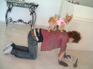 大豆の陣地にきなこ投入微妙な空気が流れる・・・おおっ大豆のおやつを奪った!!それでも大豆は怒らないおおっ今度は大豆の上にぃそれでも大豆は怒らない・・・ワンコの組体操技の名前は【クロス】だね~どかさないでよっにゃんこの鼻掴み攻撃ぎゃぁぁぁぁーーーーーファッションモデル気取りふふふっまた遊んじゃったぽちっと押してね
