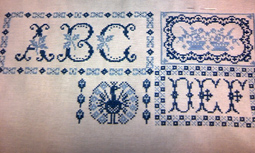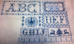 欲張りなんですよね~。お金を出して買ったチャートはそっちのけでまた違うSAL フリーチャートに手を出してしまいました。(C) GAZETTE94"GRAND ABECEDAIRE" フリーチャートFabric:Hand Dyed Jobelanのむら染め布 Queen Anne's Lace 32 Ct.Thread: DMC 794 803 (2over2)今度は青系です。今回、自分で色を選びましたが、これがなかなか時間が掛かりました。でも、時間が掛かっただけあって、お気に入りの組み合わせになりました。結構、楽しく刺しています。フリーチャート、いつもは海外のフリーチャートを紹介してくれる- LaGattaC -様というサイトで拝見したりしています。今回もこちらで見かけて、お気に入りに登録し、様子をうかがっていましたがお友達や沢山の方が刺し始めて、誘惑に負けたと言うか刺したくなって始めました。いつか刺そうと取っておいても、旬が過ぎてしまうと刺す気が失せてしまうことが多いし、皆さんと同じ時期に刺すのがまた刺激になって楽しいですもんね! いつも応援有り難うございます。