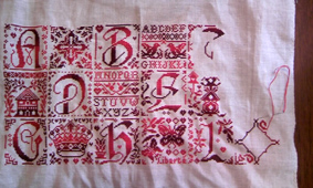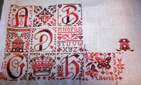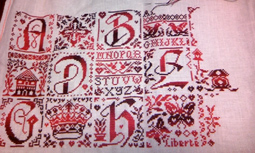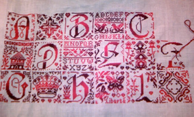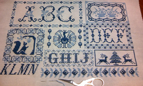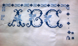 昨晩は積雪が3~5センチなんて話があり、深夜に少し降ったみたいです。が、起きてみたら跡形もありませんでした。子供達は雪合戦が出来るかも~なんて喜んで寝ましたが…残念でした。フリーチャート"GRAND ABECEDAIRE" の経過です。前回はこちら (C) http://gazette94.blogspot.com/"GRAND ABECEDAIRE" フリーチャートFabric:Hand Dyed Jobelanのむら染め布 Queen Anne's Lace 32 Ct.Thread: DMC 794 803 (2over2)もう少しでPART1が終ります。全部でPART8まで、もう既にPART4まで公開されています。フリーチャートなのに本当素敵ですよね? いつも応援有り難うございます。