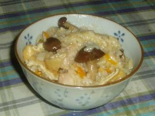 新米のおいしい季節ですね。私は新米がでると、炊き込みご飯を作りたくなります。圧力鍋で作るともちもちして本当においしいですよ。材料 米 3C 水 3C ニンジン 50g 油揚げ 1枚 A 酒 大さじ2 しょう油 大さじ1 塩 小さじ1/2 鶏もも肉 100g しめじ 1パック しょう油、みりん 各大さじ2作り方・米はといで、ざるに上げて水切りします。・ニンジンと油揚げは千切りにしておきます。・鶏肉は小さめの一口大に切り、しめじは小房に分けます。・圧力鍋に米と水、ニンジンと油揚げを入れAの調味料を加え、ふたをして中火にかけます。・おもりが回り始めたら火を弱火にして6分加圧します。・そして火を止めて10分蒸らします。・加圧している間に鶏肉としめじを鍋に入れて、しょう油とみりんを加えて、煮込みます。鶏肉に火が通ったら火を止めてください。・蒸らし終わったご飯に鶏肉としめじを汁ごと加えてふたをして加圧しないで弱火で3分炊きます。・火を止めてから5分蒸らして出来上がりです。