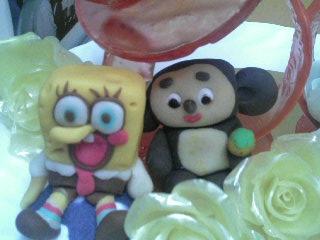 マジパンのスポンジボブとついでに入ってしまったサル?です。飴細工のバラに埋もれていましたΣ( ̄□ ̄;