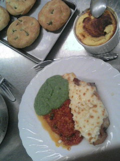 フォカッツァ、豚肉のピッツァ職人風、ブラックタイガーのスフレ、ホテルドアテネ風