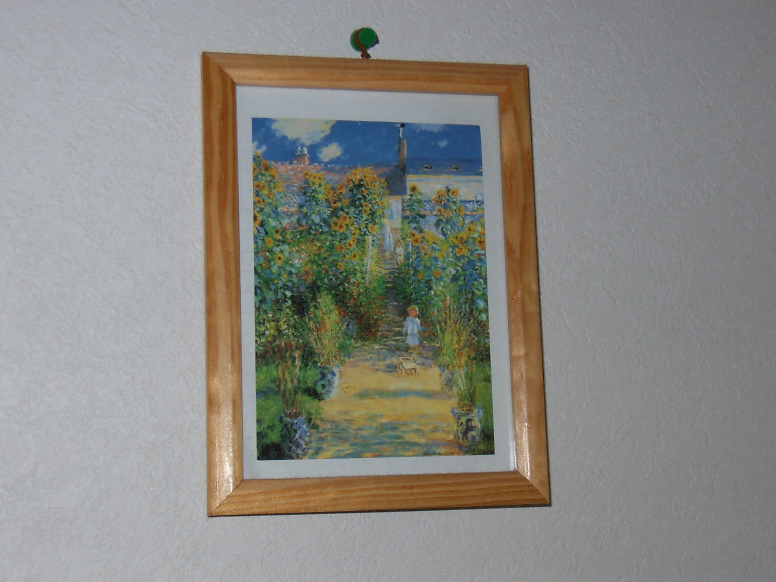 モネの絵が好きです。 コローの絵が10代の頃はとても好きだったのですが 20代半ばごろから とてもモネの絵がすきになりました。 色彩がきれいで明るいので 部屋に飾って見ていたい気持ちになりました。 といっても すべて絵葉書の大きさかA4サイズです。 これは絵葉書の大きさです。 狭い部屋の一角にぴったりです。