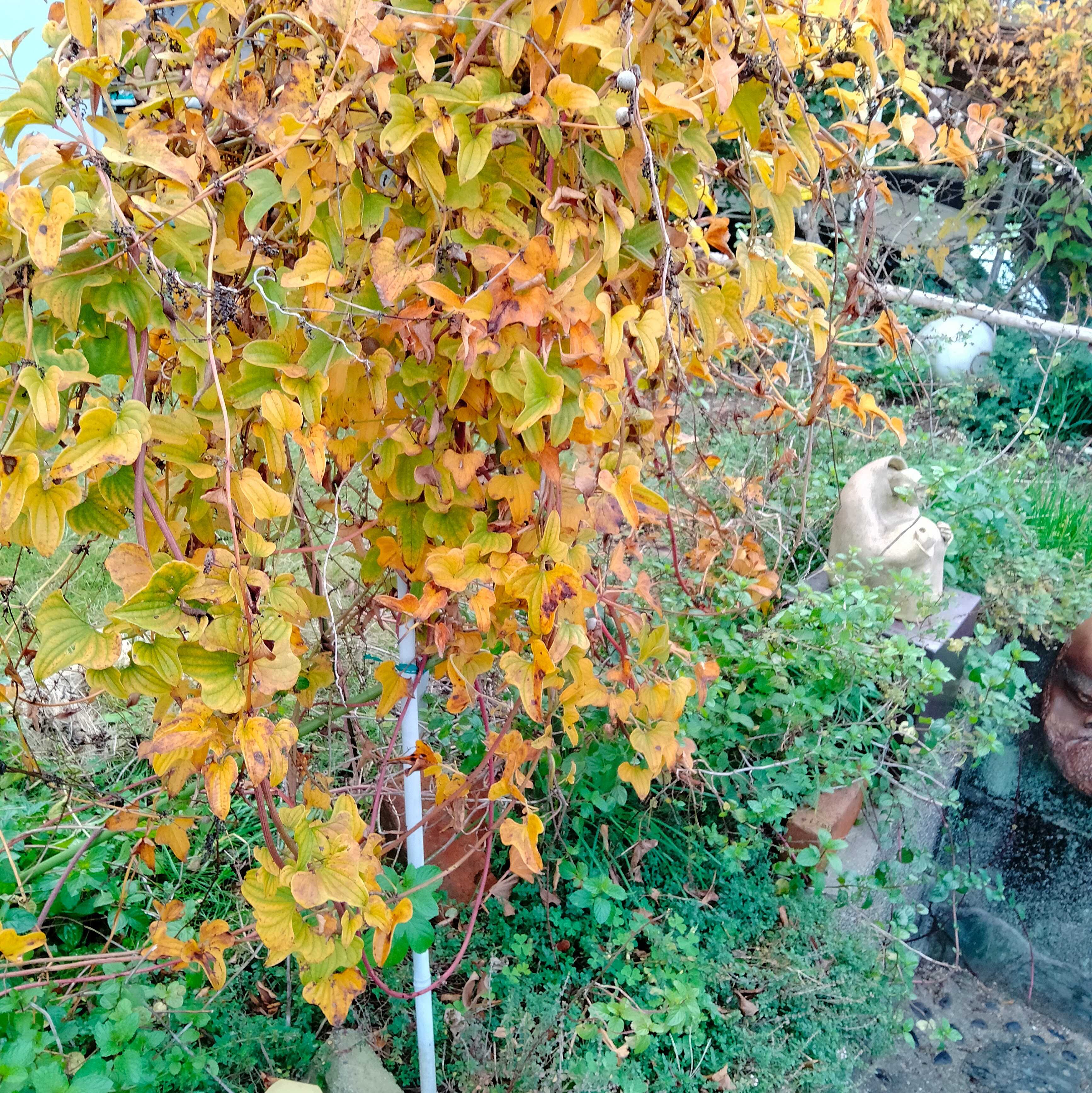 ヤマノイモの黄葉 今年もムカゴがいっぱい採れました