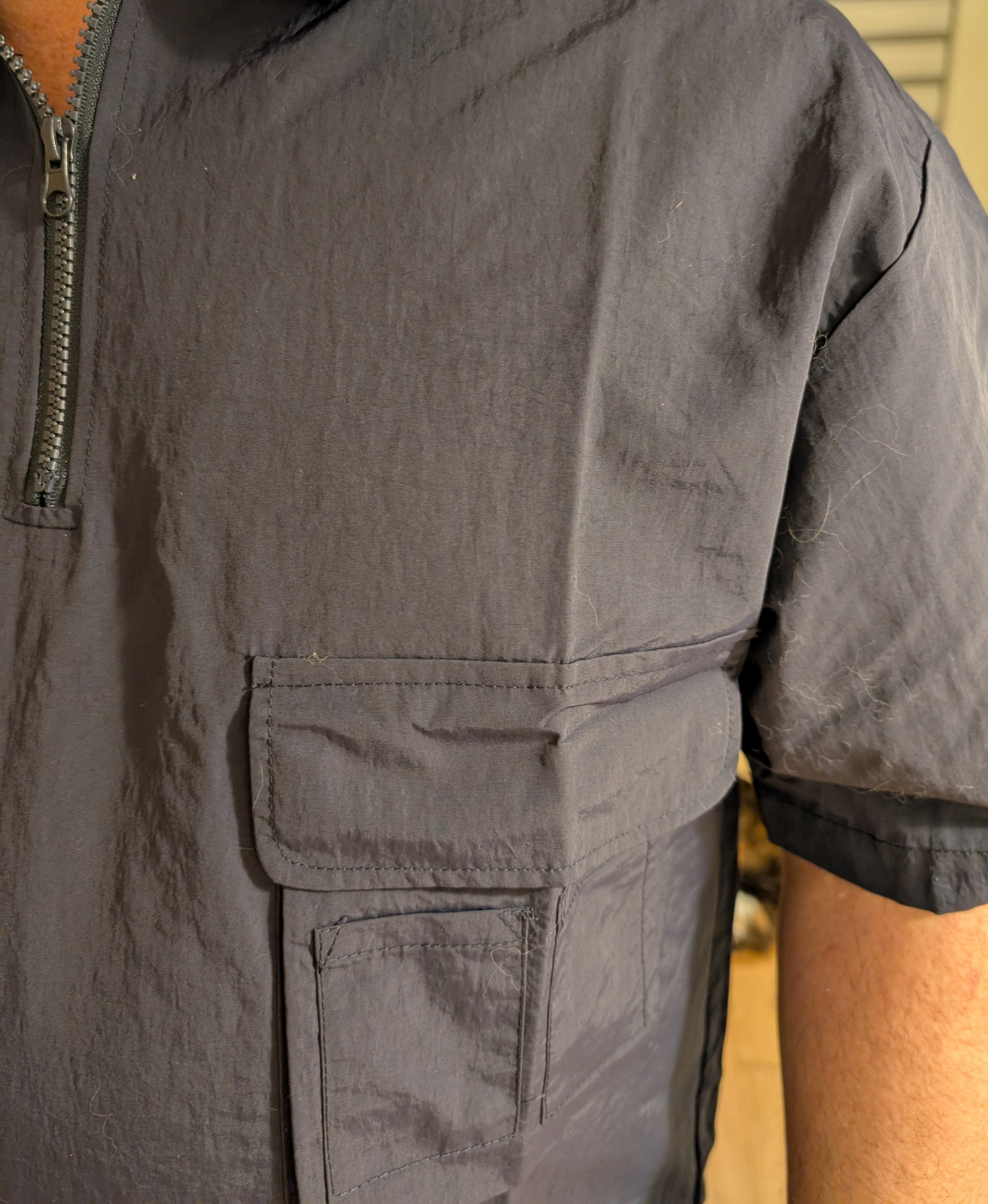 myrth|【SALE30%OFF】ハーフジップ シャツ トップス メンズ 半袖 オーバーシャツ ポケット プルオーバー 無地 ライトグレー ネイビー M L マイルス 2404