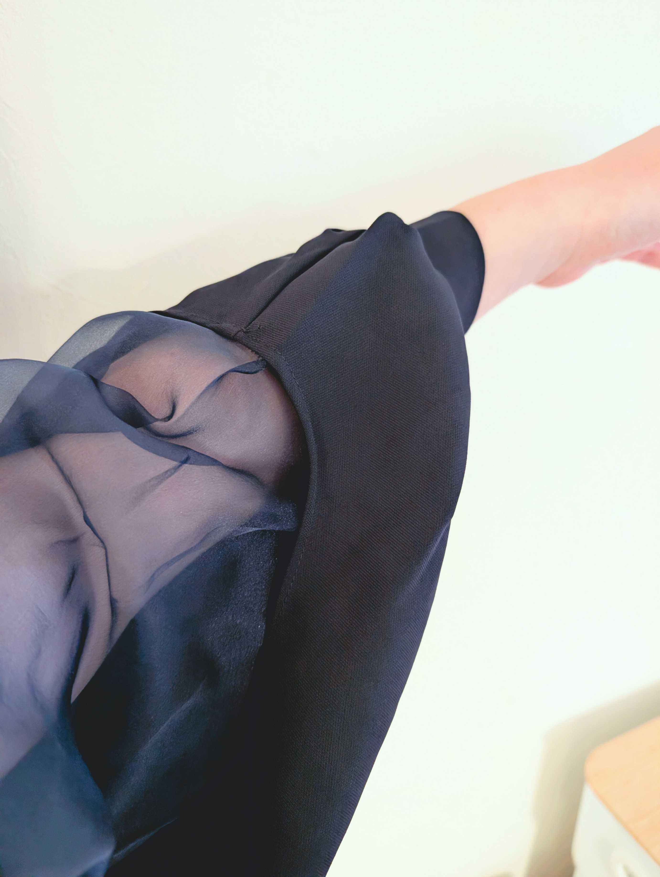 セットアップ 大きいサイズ パーティードレス パンツドレス 結婚式 ペプラムブラウス クロップドパンツ プリーツ裾 パーティー ブラウス 袖あり ウエストゴム シアー袖 レディース フォーマル cy88633