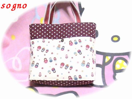 またまた作りましたマトリョーシカのミニトートもちろん娘の助けを借りてマトリョーシカの部分はポッケ両面にあります画像のポッケは1部屋なのでパカパカしないようにism-ハンドメイド・副資材さんで購入したを使用反対側は、真中をミシンで縫って2部屋に内ポケットはなしなかなか、可愛くできました