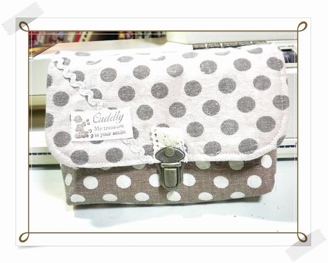 右手が使えんくなってからの、初のファスナー(`・ω・´)ゞ縫えるかどうかお試しのつもりだったので、キャラメルポーチを選択で、出来上がったのがこれダイソーで見つけたタグを付けて見ました( ̄ー☆やっぱりYUWAのハーフリネンは可愛いちょっといがんだけど、ファスナー、意外に縫えるもんだ( ̄ー ̄)