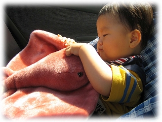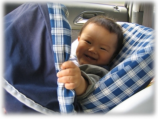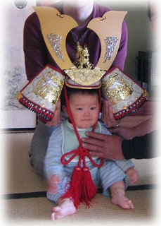 パパの実家に初お泊まりをした朝。息子は家だろうが、よそだろうがお構いなしで、夜中に3回ほど起きて、「あー」だの「うー」だの言ってました朝まで一度も起きずに寝ていた頃もあったのに・・・初節句パパが両親に買ってもらった兜を、息子が受け継ぎました。パパとじーちゃんに支えられつつ、兜をかぶる息子。泣きそう。。でも泣かないよ!昼すぎにはパパの故郷を出発。またまた4時間を超える長旅の始まりだぁ実家を出て高速のインターにさしかかった頃には、息子就寝じーちゃん&ばーちゃんとたっぷり遊んで、疲れたのかな?ママは、パパの居眠り防止のために、4時間ノンストップトーク。来月の初誕生の祝いには、福岡に義父母を招待する予定です。さー!がんばるぞ~~!!