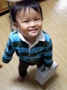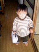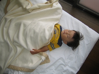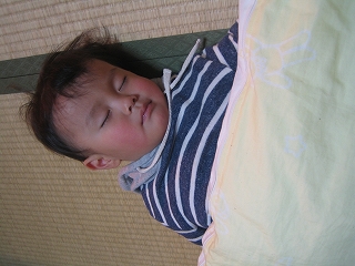 昨日は昼からママはスクラップブッキングクラブへパパは散髪にお出かけしていて、のんたはお祖母ちゃんの家へ。姉一家も同居しているので、従姉・従兄に遊んでもらって16時すぎまで昼寝せず頑張っていたらしい。夕方迎えに行って、一緒に晩ご飯まで食べて帰ろうと思っていたら抱っこしている息子の身体が熱い。39度2分・・・!?あちぃ。今朝は、熱は下がったようだけど・・大丈夫?