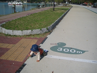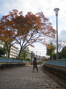 歩くって嬉しいことなんだな、と息子をみていて思います。いつごろから「歩く」ことを嫌いになるのだろう。郵便局へお出かけです。・・・ええ、スクラップブッキングのお買い物をしたのでショップに入金に行くのですよ。団地の中を抜けて行くので、車も来ないし、歩いて行きました。行ったり、戻ったり、よろけたり、転んだり。午前中は1時間ほど、歩いたり抱っこしたり。さすがに疲れたのか、昼ご飯を食べながら眠そうです。布団にコロン♪と5分もせず昼寝して、2時間近く爆睡。あまり寝ると夜眠れなくなるので、無理矢理起こしてベビーカーで外出。晩ご飯の準備を終えて、洗濯物をたたんでいたら、とことこ寄ってきて、足の指をツンツン指して・・・意思表示かな?「お靴はいて、お散歩いくの?」と聞くと、頷いて玄関のほうへ歩いていかれてしまいました。夕方18時頃から散歩。2日ほど前に泣き叫んで困り果てて出かけた夕方の散歩が、なぜか日課になりつつあります。