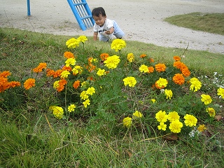 先日の稲刈りの映像がTVで流れました。のんた君や従兄が出るかと思いきや、私やパパが名前入りで放送ひーん、はずかしぃ。知ってる人が誰も見ていないことを祈るのみTV見終わって、のんたが退屈そうなので公園へ。立って5~6歩あるけるようになってきたのに、まだまだハイハイです・・・