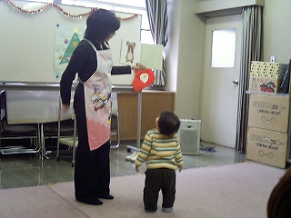 公民館の乳幼児ふれあい学級に行ってきました。月に1回だけの学級なのに先月はお休みしてしまったので、「あるいてる!!!」と皆に驚かれました今日はクリスマス会。いつもはおやつを下さるのですが、今日はシチュー他にも、担当班のママさんたちのハンドベル演奏や、先生が作って下さっていた折り紙サンタさん&ツリーを紙袋に貼って思い思いにシールやクレヨンで飾ったりしました。とても人見知りで親しくなるまで時間がかかる私にも、やっと学級で一緒に座ってお話しする友だちができて、焦って話題を一生懸命探して話したり、楽しそうな輪に入れず、息子とぽつんと二人だったりすることもなく学級の活動をしっかり楽しむことができるようになりました。まぁ・・息子は場所見知りも人見知りも無く、公民館の中を我が物顔で歩き回るし見知らぬママさんの背中に寄りかかってみたり、ヒザに座ってみたりこども同士が同級生の友だちが折角できたのに、今考えている中古マンションに引っ越ししたら違う校区になるからまーたゼロからの友だち作り息子が幼稚園に行くようになったら、幼稚園でのお友達が出来たりするかな。今日もランチボックス持って、狭い家の中をウロウロ。楽しいの?