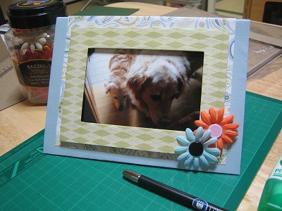 某掲示板で参加者を募っているリトミック第三回目。初回から参加していますが、毎回息子はノリノリそして必ず先生が手にしているものを奪いに行きます今回は、先生が魔法使いになって、こどもたちに魔法をかけていく設定。音楽に合わせて、くるくる回ったり、手だけ動かしたり、固まったり。でも、のんた君は、先生がもっている☆のついたステッキに執心・・・虎視眈々と狙っていました・・・そしてハイハイで寄っていって奪う誰かこの怪獣をとめてください・・・リトミック終了後は、初ティータイム。先生が持ってきて下さった紅茶でほっと一息できました。お手伝いをしようと思っていたのに、逆にのんた君がジャマしてました午後からは、一緒にリトミックに参加しているママさんが我が家へ来てくれました。姪御さんの一歳の誕生日プレゼントに、写真立てをプレゼントしたいということで、先日スクラップブッキング講習会で作ったキャンバス写真立てを作ってみることにしました。のんた君がちょうど昼寝していて、さくさく作れるだろうと思っていたけれどうまくアドバイスができず、完成には至らず。自信持ってアドバイスできるほど、自分のセンスに自信ないのよね。もっともっと向上しなくっちゃ!